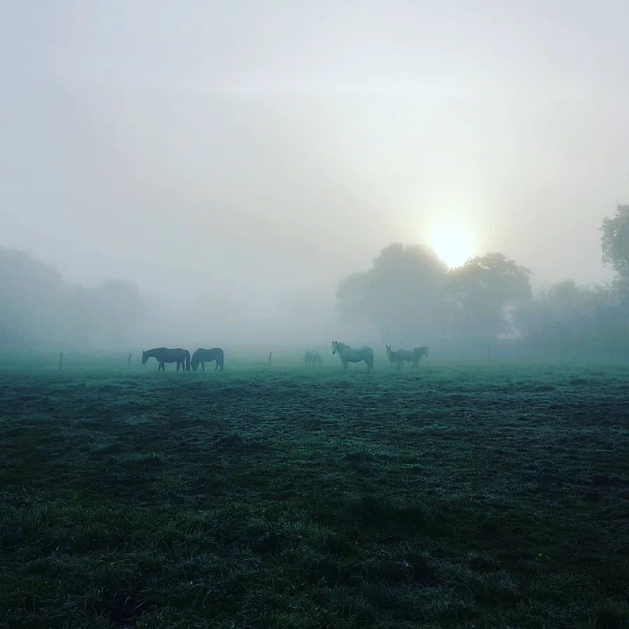 chevaux dans la brume
